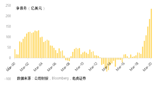 高杠杆的弊端是危机时期容易出现违约风险,而且不方便像过去一样进行回购、派息,因为如果举债回购必然会进一步加大违约风险,反而容易起到负面作用。本季度波音就宣布延长了暂停回购和派息的时间。