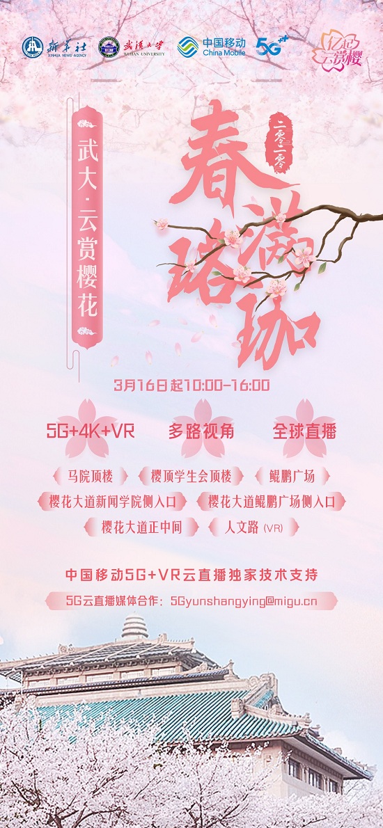 新华社携手中国移动走进武汉大学 全球首次5G+VR邀你“亿起云赏樱”