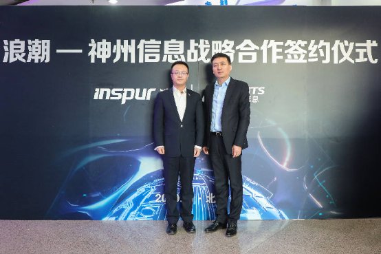 浪潮集团副总裁、渠道管理部总经理王峰(左)与神州信息集成战略本部总裁闫光明(右)