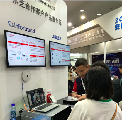 在展台上,东芝还展示了与宝德、普安等客户联手展出平安城市、人工智能等行业解决方案,以及与宇视、巨峰等合作展出监控设备,针对不同业务,不同场景,为用户量身打造了最完整的储存方案。