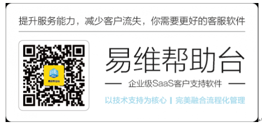 易维帮助台(www.ewei.com)是业界领先的SaaS客服软件,为企业提供全套工单系统、在线客服和IT运维管理解决方案,拉近企业与客户的距离,提高服务能力,减少客户流失。自2015年6月正式上线以来,易维帮助台对产品不断进行精细打磨、坚持每周更新迭代、不断追求完美,相继获得多项国家专利认证。取得“CMMI认证”、“入围《2016最值得关注的企业服务推动者TOP20》榜单”、“中国好SaaS产品奖”、“国家产业服务平台2016年度企业服务最佳服务商”、“2016年度最佳企业服务创新产品金i奖”等诸多成就。持续的产品和技术创新,成功赢得神州数码、华为、中国电信、中国移动、南方电网、友邦保险、鄂尔多斯、搜索亚洲、万科物业、蓝光嘉宝、蓝色光标、华西医院、新东方、中青旅等各行各业领军企业的信赖和合作,累计合作客户超过10000家。