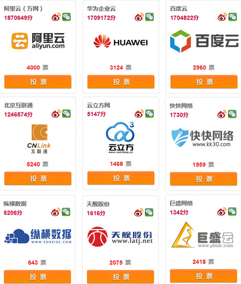作为一年一度的行业盛会,IDC评述网举办的第八届十佳IDC评选活动,目前已吸引将近90家参选商家,参与评选的IDC服务商有:阿里云、华为企业云、百度云、蓝汛、网宿科技、世纪互联、盛大云、北京互联通、深圳互盟科技、云立方网、中诺科技、纵横数据、快快网络、天舰股份、巨盛云等,预计月底将超过100家。