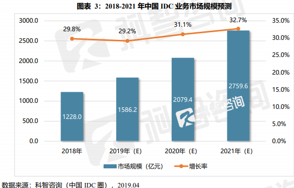 2018年中国IDC市场规模达1228亿元,IDC市场增速放缓