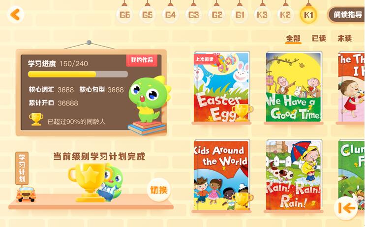 针对每个孩子不同的学习进度,CinoStar英语小博士做到了因材施教。学生登录后会进行智能基础评测,根据评测结果进入相应的班级,智能匹配课程内容,同时家长还可根据孩子自身能力,适当增减学习进度。