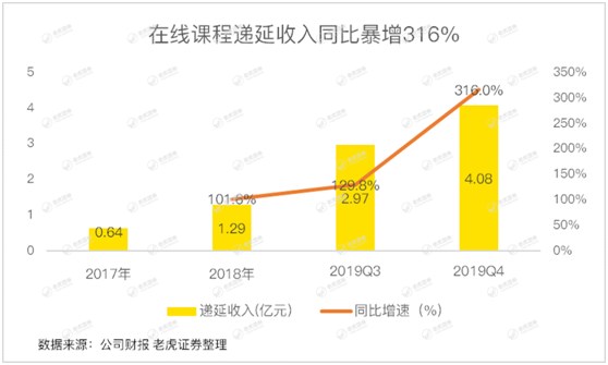 在学习服务和产品业务中,在线课程的总账单增长了211%,达到了人民币3.47亿元,语文、物理、英语和儿童编程课程的增长最为强劲;在线课程递延收入同比暴增316%,达到4.08亿元;智能学习产品受有道词典笔2.0的推出而大增400%,唯一可惜的是,财报里并没有提及金额,老虎证券投研团队认为,随着产品走进线下,预计智能产品的销售额将继续大增。