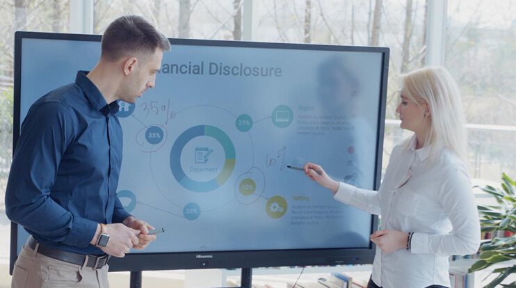 在开会过程中,多种画面的显示方案一直是与会者的迫切需要。海信在智汇+塑造的新会议生态中注入了多种产品显示方案,成为了开会方式的全新重塑。其中,海信贴心地添加了会议板中板与拉幕设计,不仅可在开会过程中随时调出提纲阅读备注,且可在一屏上实现PPT与白板的分屏显示;此外,可实现不同屏幕呈现不同内容,不同屏幕显示相同内容等多种显示功能;对于远程的视频会议,一样得心应手,方便与会者的各种会议需要。