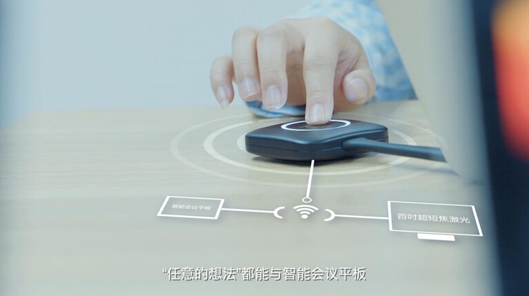 以往传统的会议室里,与会者总会为蜘蛛网般的接线和凌乱的信号接口不对而延长会议的时间,为此,IT技术服务人员也要随时待命,为会议的正常开展保驾护航。而在发布会现场,我们看到多个会议生态里,任意与会者都可以通过海信传屏宝将笔记本电脑上的显示画面一键投屏到海信智能会议平板、海信百寸超短焦激光或海信拼接墙上,并且屏前的讲演者可以通过屏幕的操作实现触控的回传,传输无需任何线材,打造了一个真正的无线会议室。