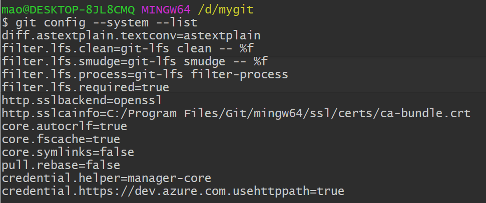 git config --system --list