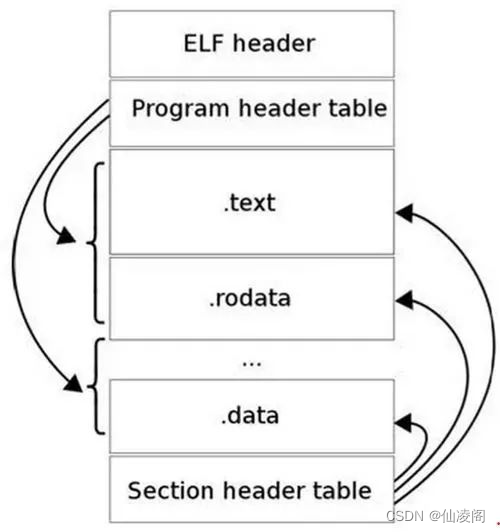 链接器链接后生成的最终文件为ELF格式可执行文件,一个ELF可执行文件通常被链接为不同的段,常见的段譬如.text、.data、.rodata、.bss等段。