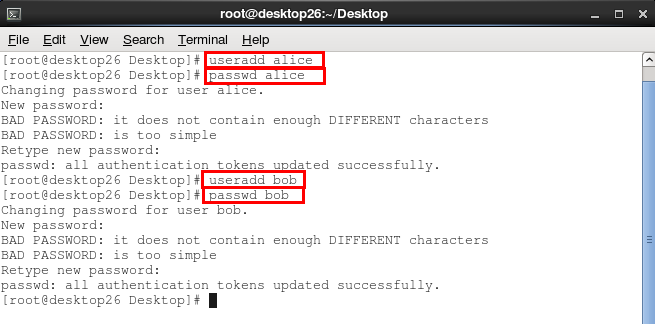 1、 在实验机中创建alice和bob用户并设置密码