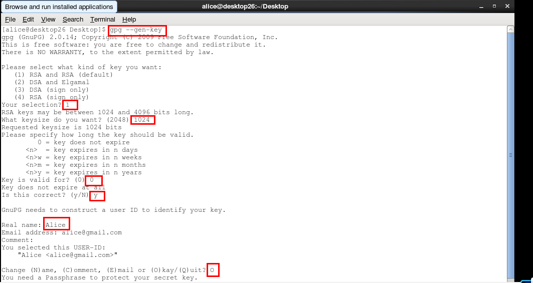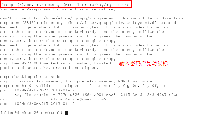 2、 切换到alice用户并生成密钥/公钥