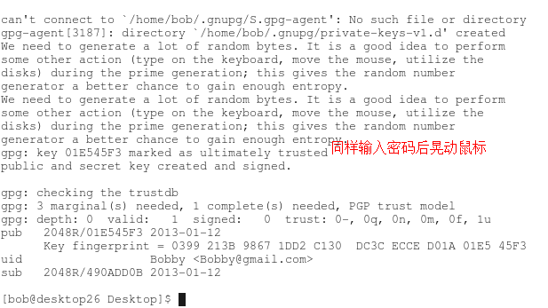 3、 同样切换到bob用户也生成一遍