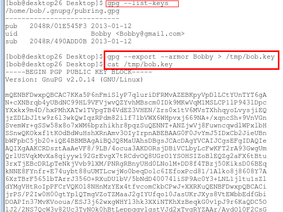 4、 将bob用户的公钥通过ASCII格式导出