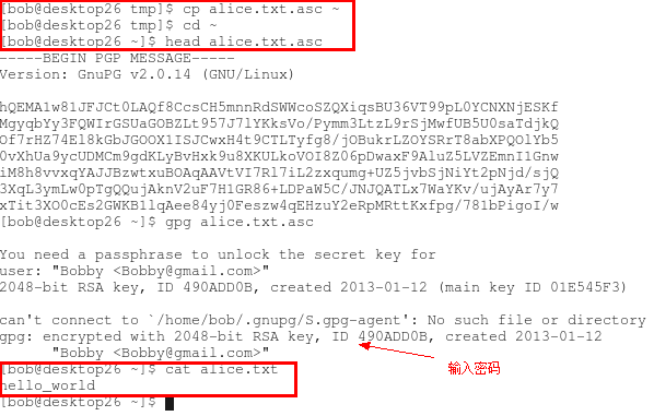 6、 使用帐户bob的私钥来解密文件