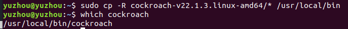sudo cp -R cockroach-v22.1.3.linux-amd64/* /usr/local/bin