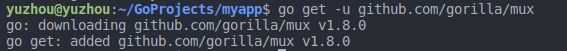 安装 go get -u github.com/gorilla/mux,如下。