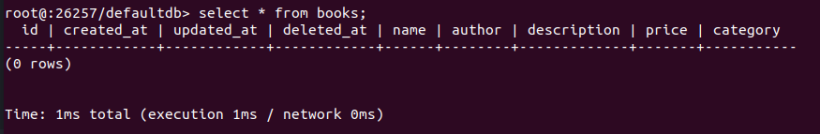 我们执行 select * from books 查看我们生成的表信息: