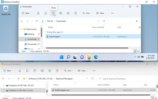 再次打开Sandbox。现在,您希望安装的程序对应的文件可能已经在主机上。您可以将任何文件夹或文件从主机复制粘贴到Sandbox中。在主机和Sandbox中打开文件资源管理器。然后只需选择并复制想要运行或打开的文件,将其粘贴到Sandbox中的文件夹(图 3)。