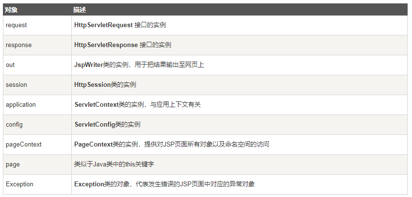 JSP所支持的九大隐式对象: