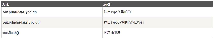 下表列出了我们将会用来输出boolean,char,int,double,String,object等类型数据的重要方法: