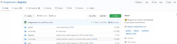 目前,diagrams已经在Github上标星14.5K,累计分支 795 个(Github地址:https://github.com/mingrammer/diagrams)
