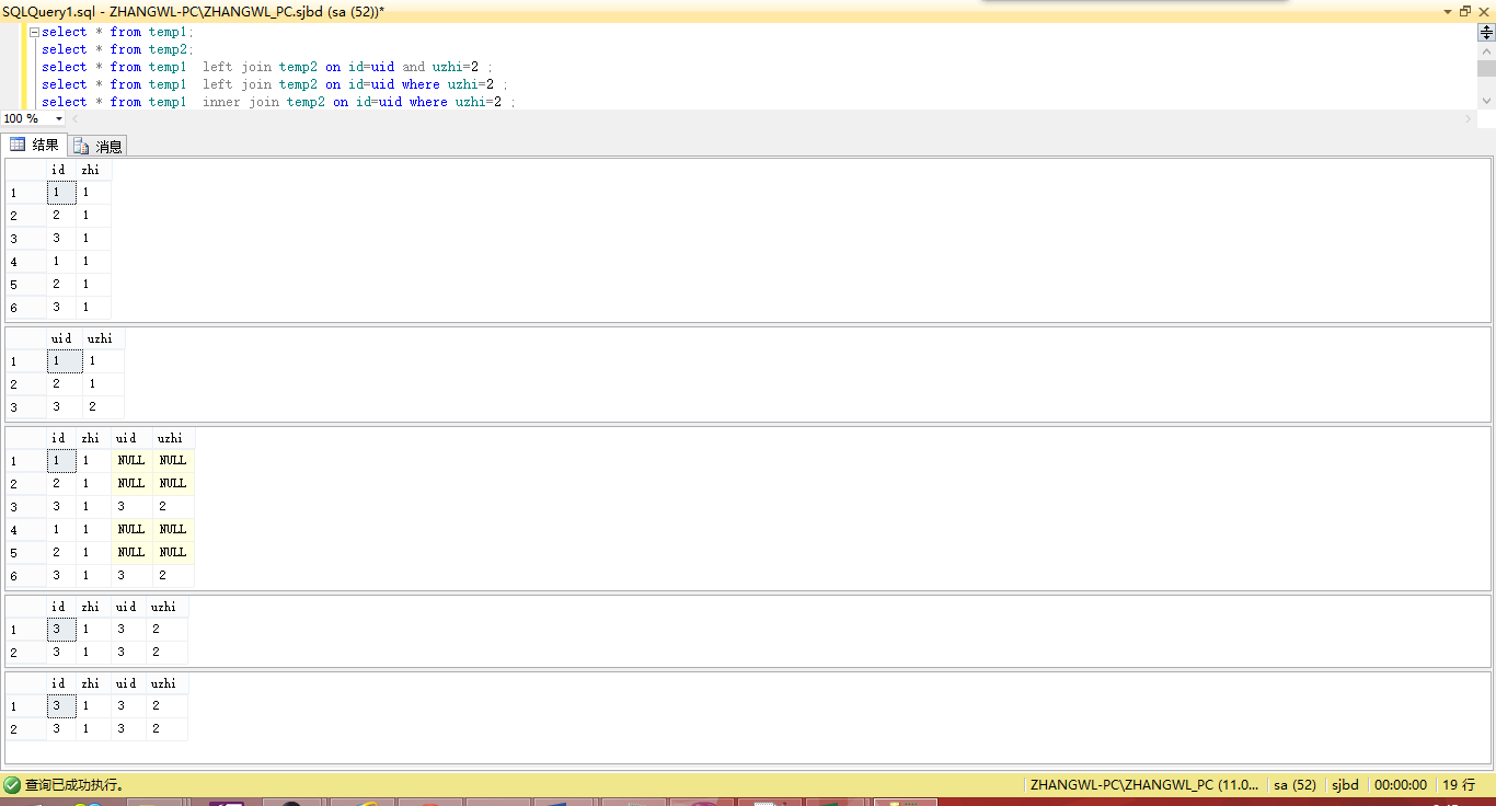 其实以上结果的关键原因就是 left join、right join、full join 的特殊性,不管 on 上的条件是否为真都会返回 left 或 right 表中的记录,full 则具有 left 和 right 的特性的并集。 而 inner jion 没这个特殊性,则条件放在 on 中和 where 中,返回的结果集是相同的。