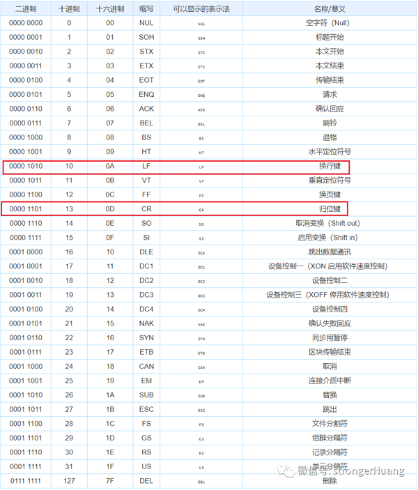 | 导读 | 在ASCII码中,我们会看到有一类不可显示的字符,叫控制字符,其中就包含\r 和 \n 等控制字符。 |