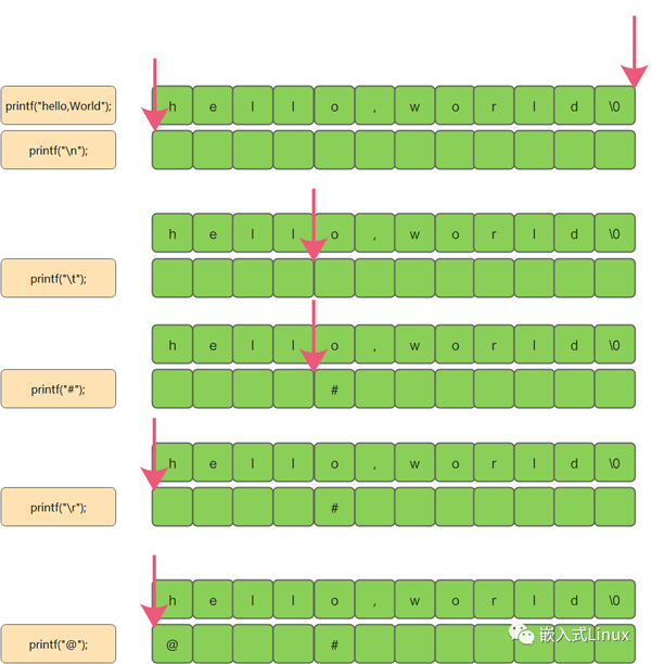 我们使用printf打印时基本都会用到 \n 和 \r 之类控制字符,比如: