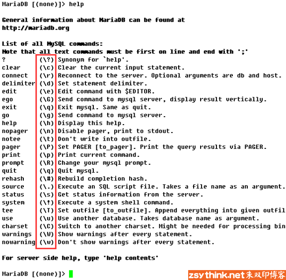 当连接到mysql数据库以后,使用help命令或者\?表示获取帮助信息。
