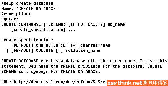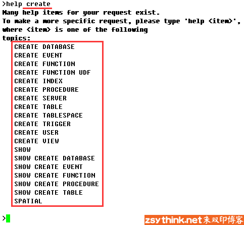 可以看到,上面列出了与”create”关键字相关的命令,同样,把列出的命令再次使用help查看即可获得对应命令的语法。