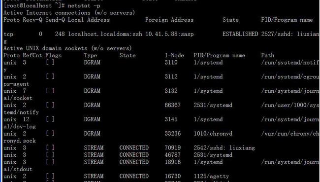 -p:显示正在使用socket的程序识别码和程序名称