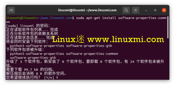 linuxmi@linuxmi:~/www.linuxmi.com$ sudo apt-get install software-properties-common