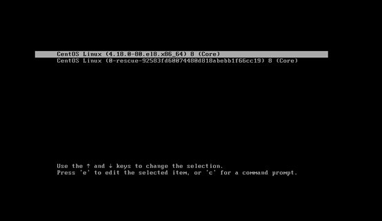 重启centos8,在这个界面按上下键选中第一行