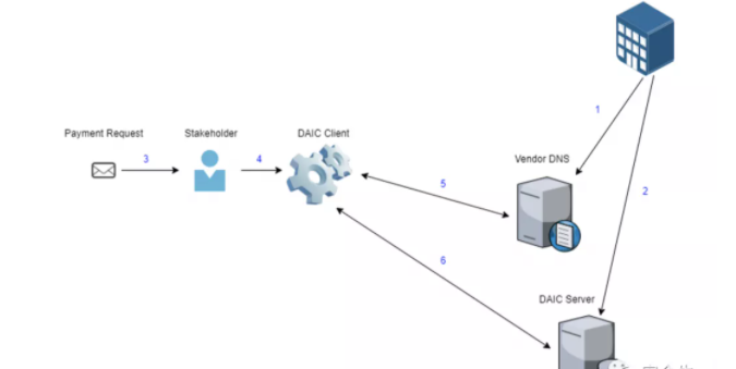 每个公司都在其DNS记录中添加一条记录,以标注他们选择的DAIC服务器。当使用客户验证账号时,用户输入收款人的账号和域名。然后,它将查找提供的域的DAIC DNS记录,以提取DAIC服务器的位置。然后查询服务器以验证账号是否正确。