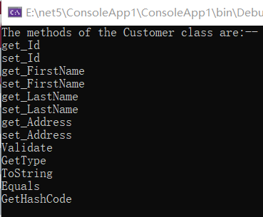 Console.WriteLine("The methods of the Customer class are:--");