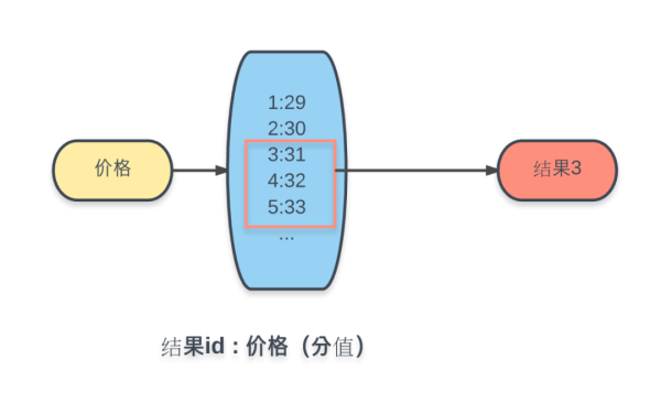 这样在 Redis 的有序集合中就可以通过 ZRANGEBYSCORE 命令,根据分数(价格)区间,获取相应结果集。