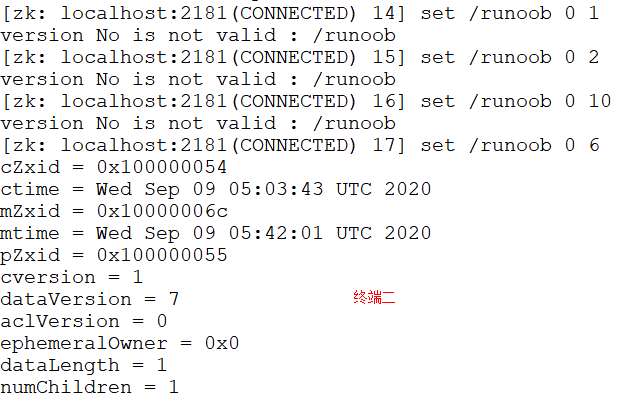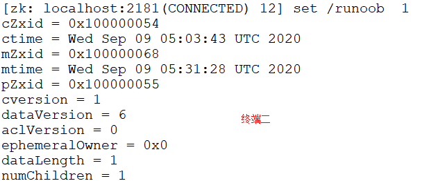 在终端二对此节点进行修改:
