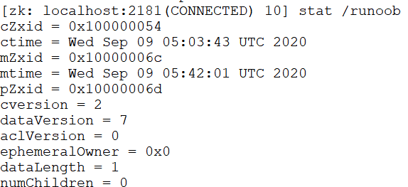 $ ls /runoob $ delete /runoob/child $ get /runoob/child