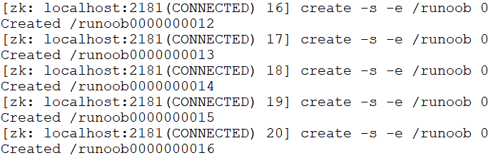 $ create -s -e /runoob 0