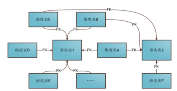 前面介绍的两种维度建模方法都是多维表对应单事实表,但在很多时候维度空间内的事实表不止一个,而一个维表也可能被多个事实表用到。在业务发展后期,绝大部分维度建模都采用的是星座模式。