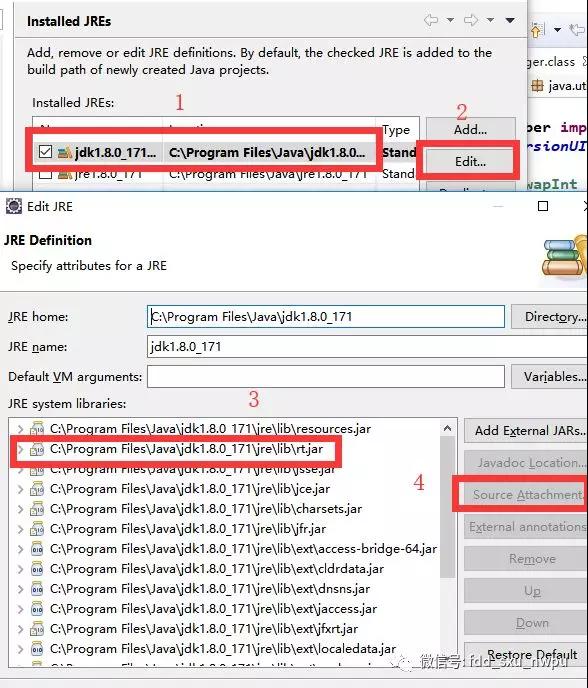 windows->preference->installed jres->选中jre->edit->rt.jar->source attachment->external folders->openjdk源码路径。此时就可以查看我们的Unsafe类的源码了。