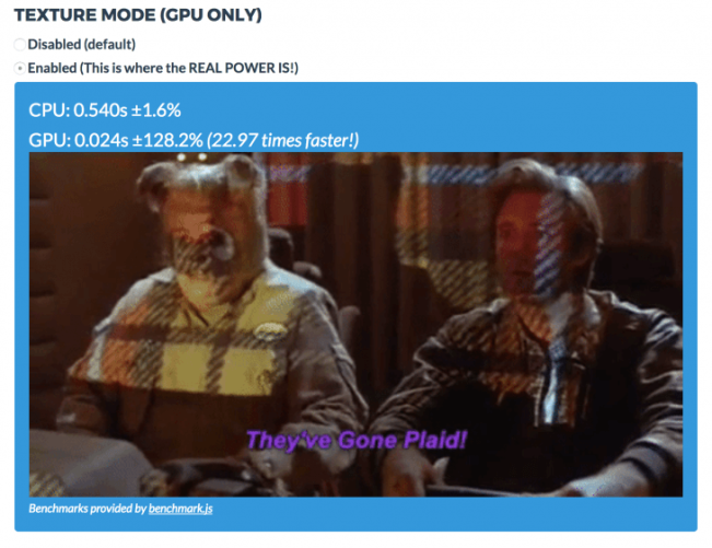 考虑到这种速度水平,JavaScript生态系统仿佛得到了一个可以乘坐的火箭。GPU可以帮助网站更快地加载,特别是必须在首页上执行复杂计算的网站。你不再需要担心使用后台线程和加载器,因为GPU运行计算的速度是普通CPU的22.97倍。