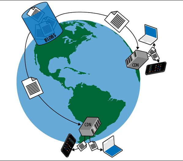 内容交付网络 (CDN) 是一种全球分布式缓存的服务。CDN 在世界各地的许多地方保存了应用程序文件的副本。当用户访问时,会选择离这些地方接近结点,内容不需要走长距离网络来传递,所以它能访问到达速度更快,以此来改善用户体验。CDN 节点设在世界各地希望尽可以能接近的用户。它有自己的 URL 负载平衡解析器,根据用户不同地理位置,无论用户在什么地方将用户引向最近的节点。