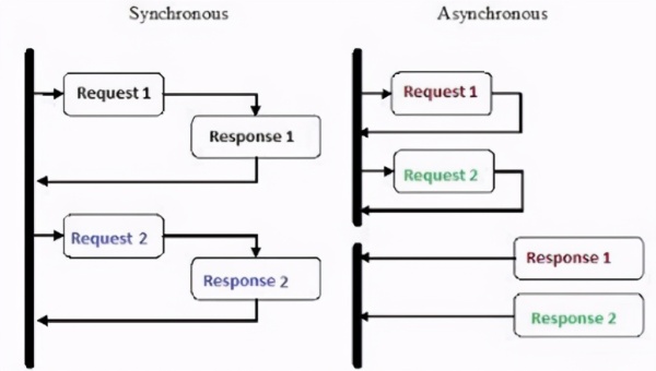 而对于异步编程来说,请求1被发出后,无需等响应1便可直接发出请求2。两个请求完成后得到两个响应。简单地说就是请求1和请求2是并行处理的,不等前一个请求的响应便提出新的请求。