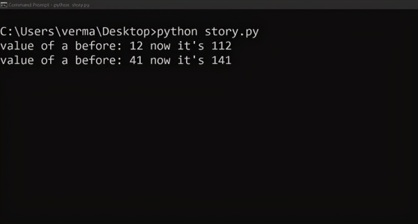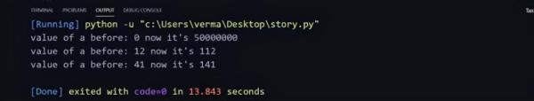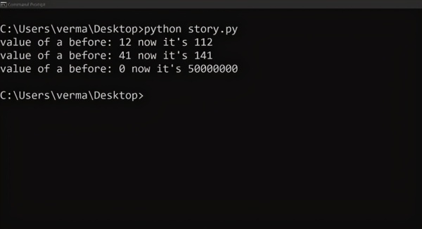 print("value of a before: "+str(b)+" now it's "+str(a))