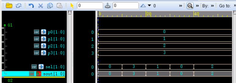 由图可知,输出信号与选择信号、输入信号的状态是相匹配的。