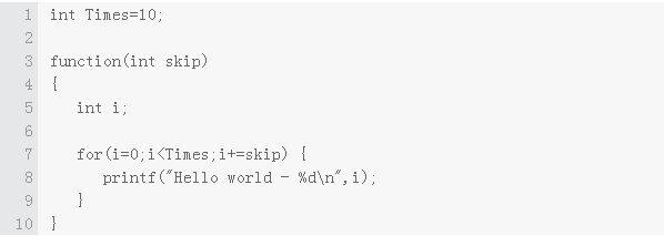 为简化起见,假设变量Times 结束于内存位置256(0x100)。堆栈上的变量i 的位置为64(0x40)。文字“ Hello ...”的位置为200(0xc8)。最后,跳过会得到68(0x44)。