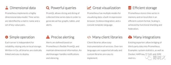 对于上面说到的这些功能,Prometheus 都能够实现。Prometheus 能根据这些收集的数据实现告警功能。