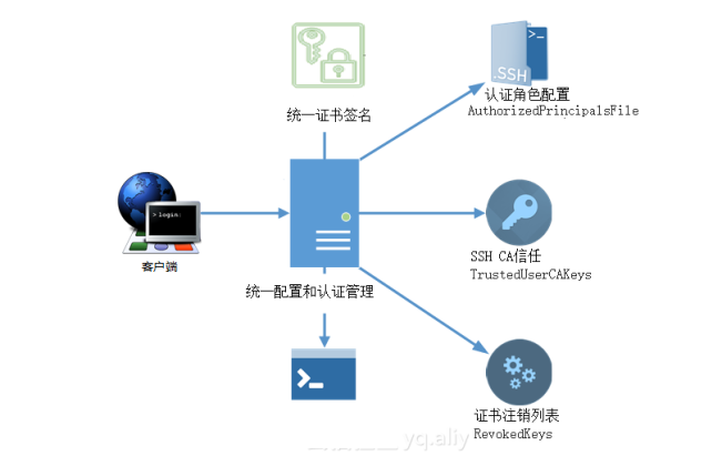 | 导读 | 通过CA签名用户公钥的证书统一管理方法。通过该方法可以实现基于角色通过ssh管理对服务器的访问。 |