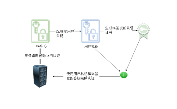 服务器上,只需配置SSH对CA的公钥认证,服务器通过检测用户证书是否通过CA签发,来完成认证过程。